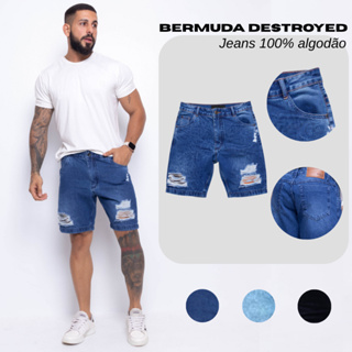 Bermuda Jeans Masculina Rasgada Destroyed Premium Short com Puidos