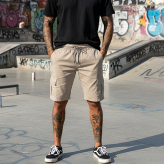 Bermuda Cargo Masculina em Sarja com Elástico e Bolsos Laterais