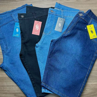 Bermuda Masculina Short Sarja Brim Colorida Premium Com Lycra Bolso Relógio