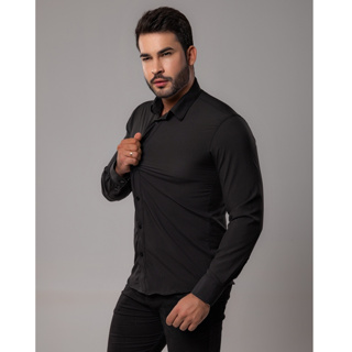 Camisa Masculina Slim Fit Manga Longa Não Amassa com Elastano