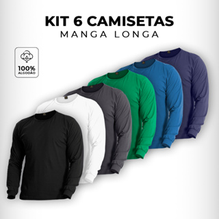 Kit 6 Camisetas Manga Longa Masculina 100% Algodão Conforto Casual Inverno Frio Dia a Dia Quentinho