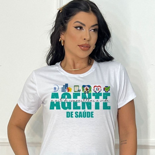 shirt Baby Look Feminina Agente de Saúde Profissional Estampada Blusa Polielastano Leve Conforto Manga Cu