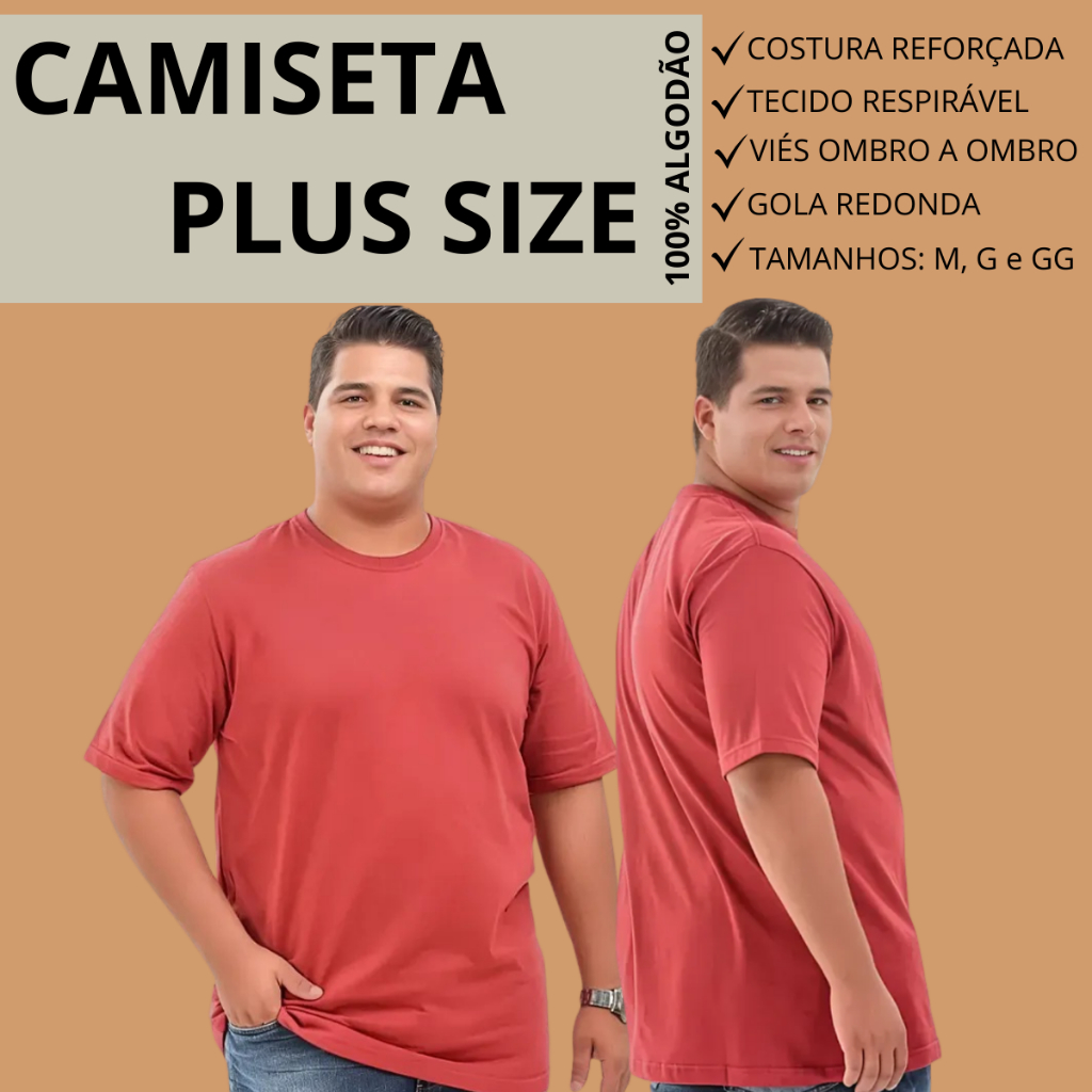 Camiseta VERMELHA Premium Plus Size 100% algodão tamanhos grande G1, G2, G3