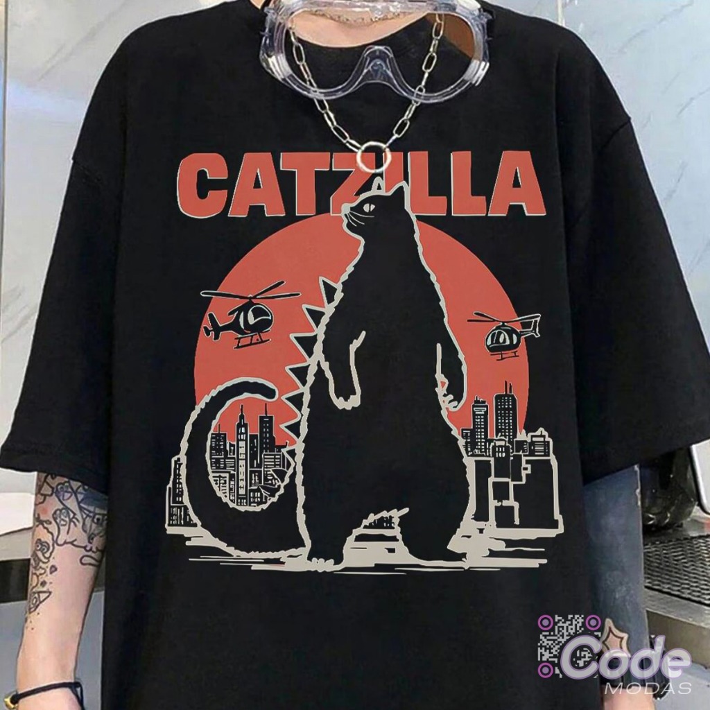 Camiseta T-shirt Unissex Algodão Camisa Macia Catzilla Cute
