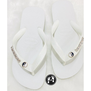 Chinelo Havaianas Branco Top com Pingentes yin yang preto 23/24 ao 45/46 Original ®️