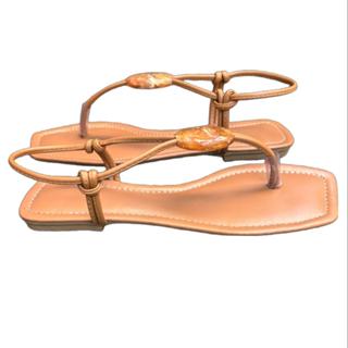 Sandália Rasteira Feminina Caramelo em Napa com Sola Gel, Dedinho Moderno