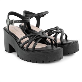 Sandália Feminina Salto Alto Bloco Festa Social Moda Pirâmide Confortável Pedraria Via Angel 52.01