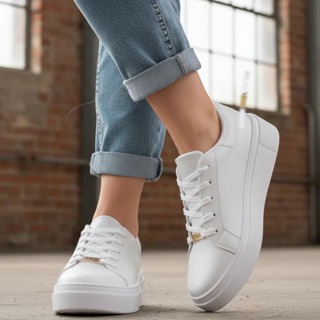 Tênis Branco Unissex Casual Solado Alto Leve Conforto Ideal Para o Dia a Dia 34 a 43