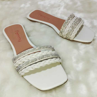 Sandália rasteira, 4 Tiras, Strass e Trança - Várias cores e confortável - Rasteirinhas Femmy