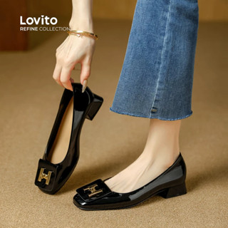 (Lovito Refine) Saltos Elegantes com Fivela de Metal para mulheres. LR31E006