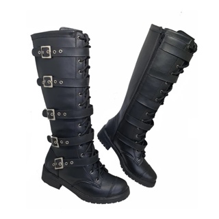 Bota Montaria Feminina Coturno Estilo Militar 5 Fivelas Véria Punk Rock Moto Motoqueiro