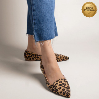 Sapatilha Feminina Animal Print Bico Fino Lançamento Confortável e Elegante