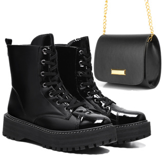 Coturno Feminino Falcucci Botinha Blogueira + Bolsa