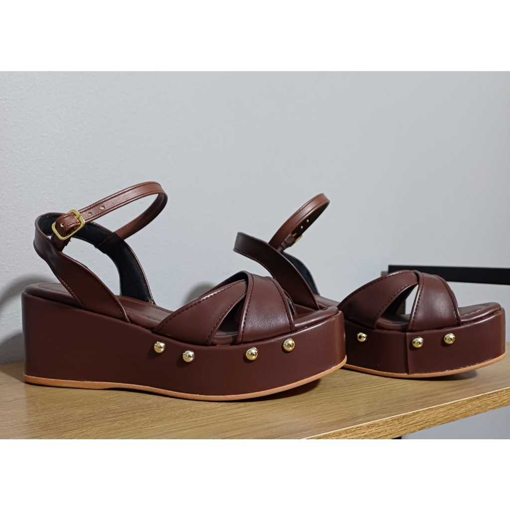 Sandalia Anabela Com Taxas Cruzadas Conforto Verão 2025 2026 34 ao 40