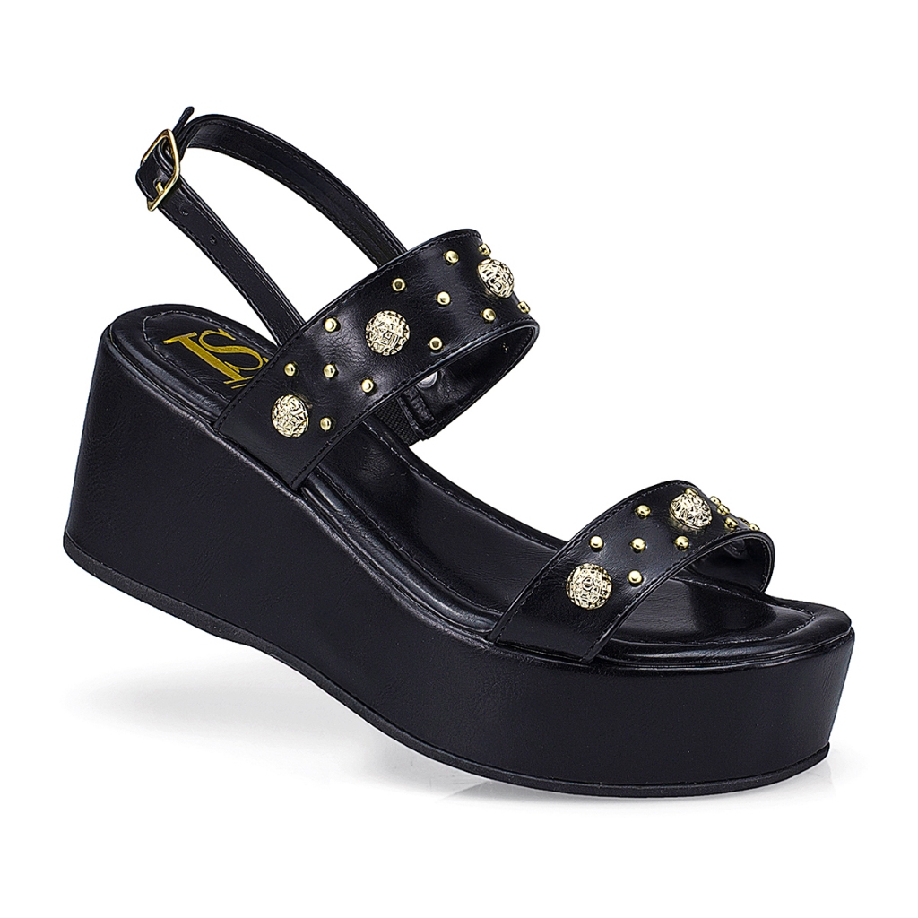 Sandália Feminina Tira Anabela Flatform Fivela Spike Ilhós Estilosa 420
