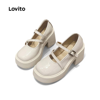 Lovito Elegante Simples Cabeça Redonda Retro Salto Alto Mary Jane Estilo Preppy Salto para Mulheres LFA58318