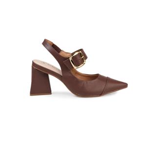 Scarpin Clássico Slingback Tira Com Enfeite Salto Bloco Bebecê