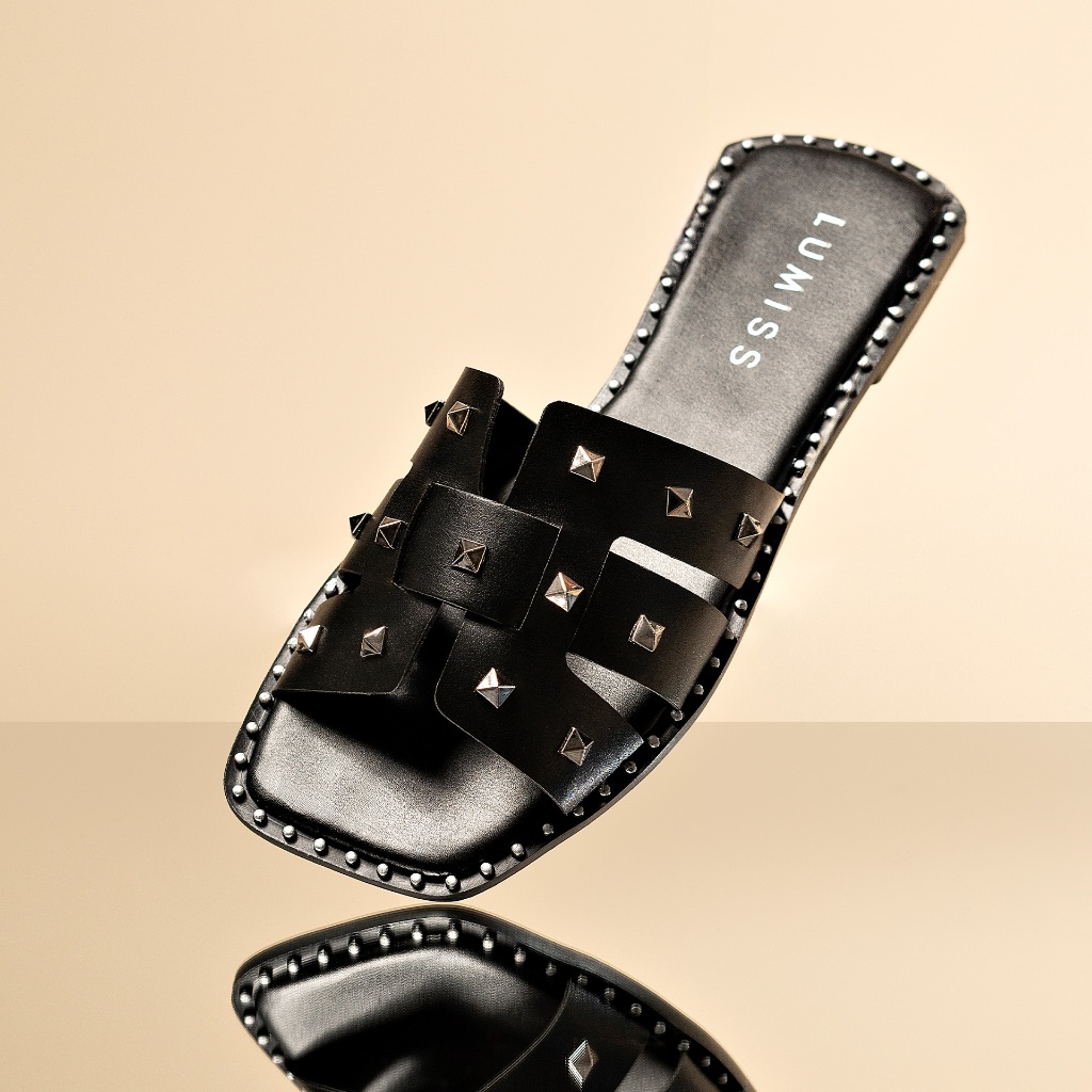 Sandália Rasteira Feminina Lumiss Tachas Spike Pirâmide Bico Quadrado Confortável Blogueira em Oferta na Shopee Shopee