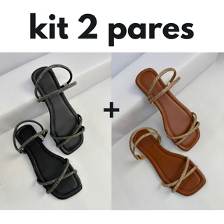 Kit 2 Sandália rasteira Feminina Com tiras De Brilho em Oferta na Shopee Shopee