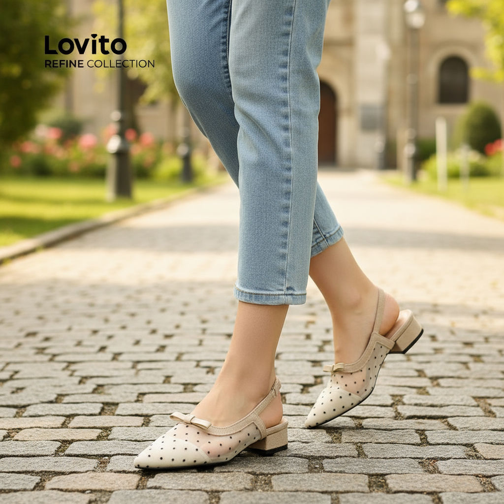 Lovito Sapato Flat Casual Feminino com Laço Liso, Malha Francesa Respirável e Bico Pontudo, Estampa de Bolinhas LFA70175
