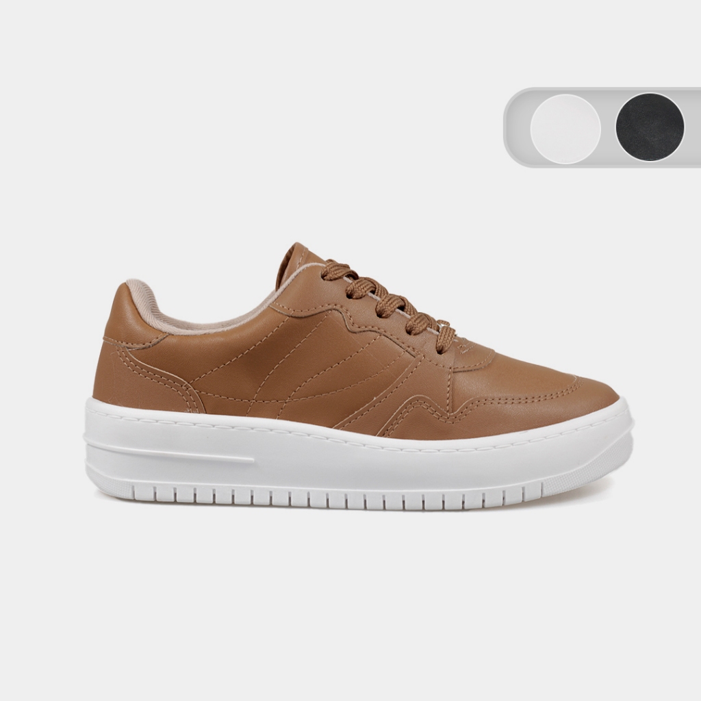 Tênis Feminino Plataforma Ramarim Napa Recortes Creme/Marrom