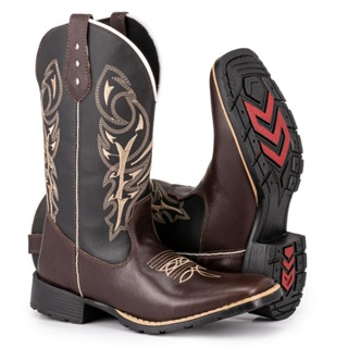 Bota Texana Masculina Country Bico Quadrado Bordada Delegada