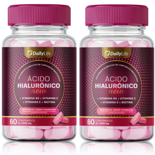 2x Ácido Hialurônico 100mg com Biotina + Vitamina C Sabor Framboesa 1000mg
