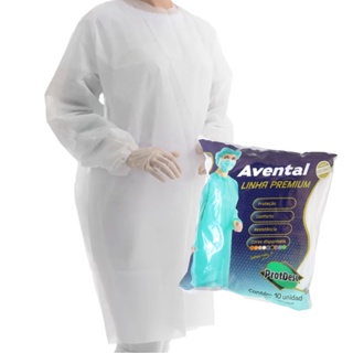 Avental manga longa TNT Descartável Branco C/10 Unidades Protdesc