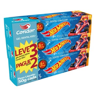 Creme Dental Condor Kids Hotweels 50g Embalagem com 3 Unidades