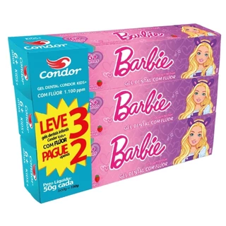 Creme Dental Condor Kids Barbie 50g Embalagem com 3 Unidades em Oferta na Shopee Shopee