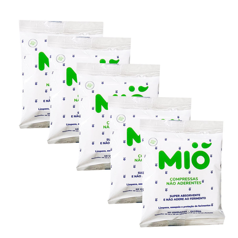 Kit 5 Compressas Não Aderentes Mió Super Absorvente Estéril com 10 Unidades