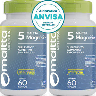 KIT 2x 5 Magnésios - Quelato + Malato + Taurato + Citrato + Óxido - 60 Cápsulas 400mg - Maltta Nutrition