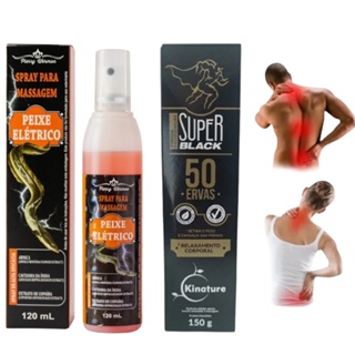 Kit Pomada Super Black 50 Ervas 150g + Spray Massagem Peixe Elétrico 120ml