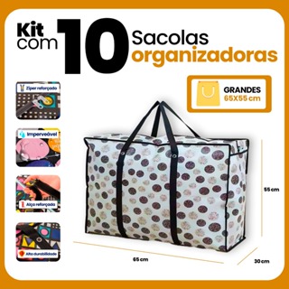 Kit 10un Sacola Sacolão Mochila Bag Viagem Compras GG Impermeável 80CM Mudança
