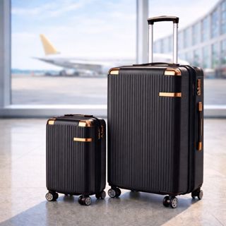 Mala De Bagagem 10kg Cor Preto Expansiva Dupla Zíper 360° 4 Rodas Bloqueio Senha ABS Novo Modelo