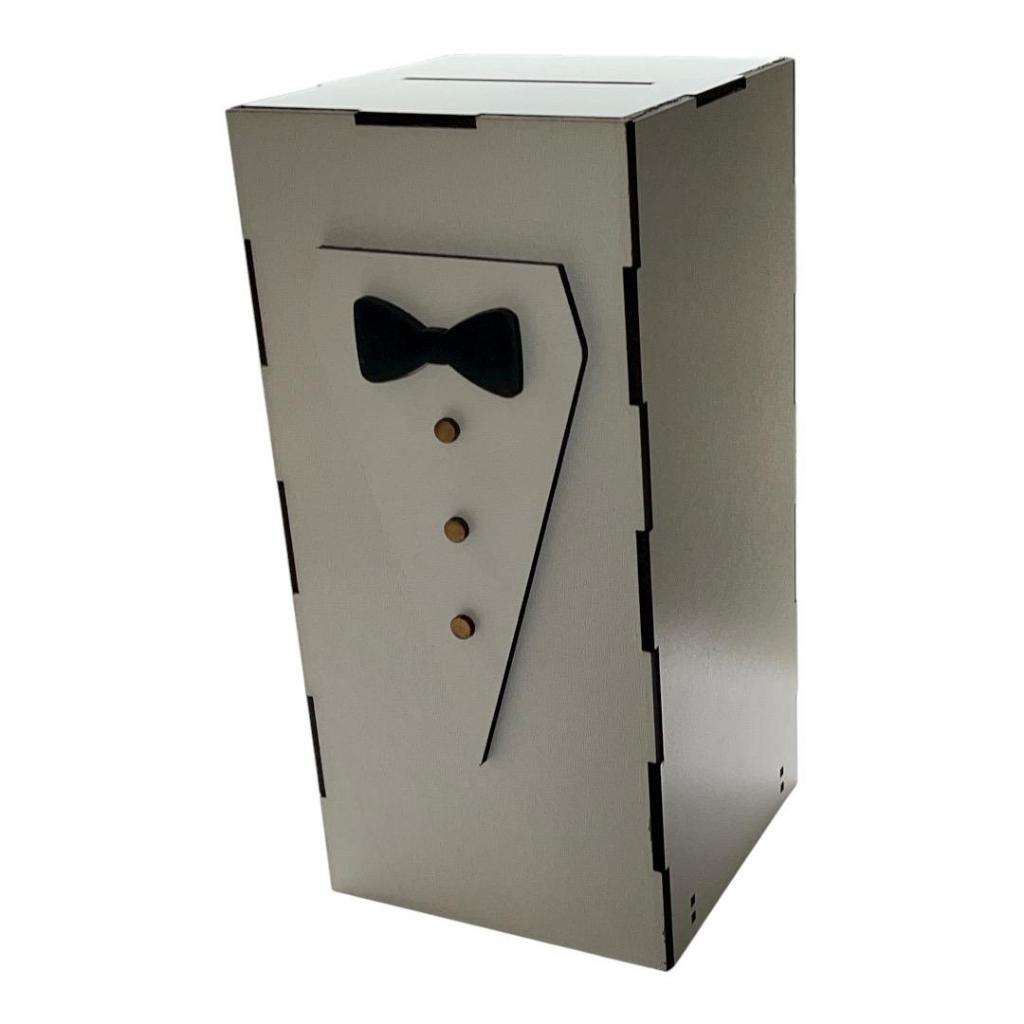 VOCE LEVA: 1 Caixa cofre para hora do sapatinho 1 Caixa cofre para hora da gravata Medida 12cm x 12cm x 25cm Usado para recolher o dinheiro na festa. Material MDF pintado
