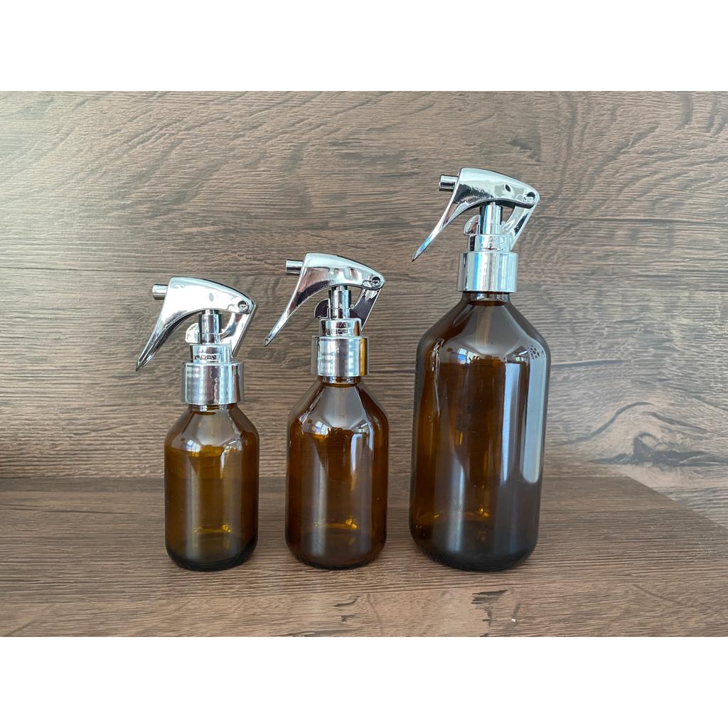 01 frasco vidro âmbar com válvula mini gatilho luxo - prata ou dourada e volume 60, 100 ou 250ml