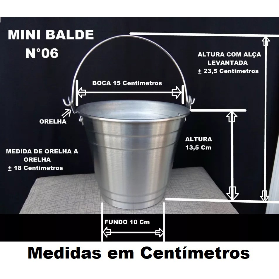 | 01 Mini Balde Nº06 Altura 13,5 Centímetro Alumínio GFB este produto | R$ 30,08 | — | 4.9/5 | — |