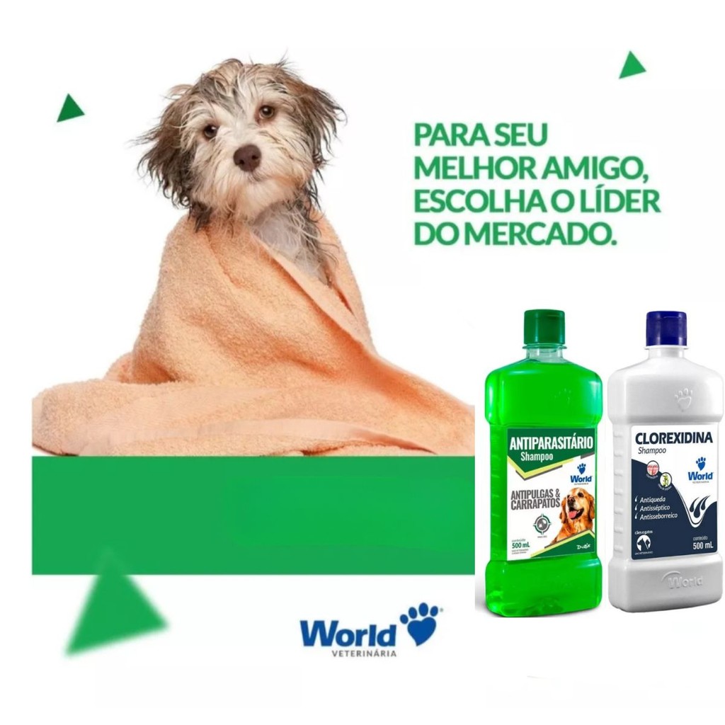 01 Shampoo Clorexidina 01 Antiparasitário Shampoo Cães 500ml