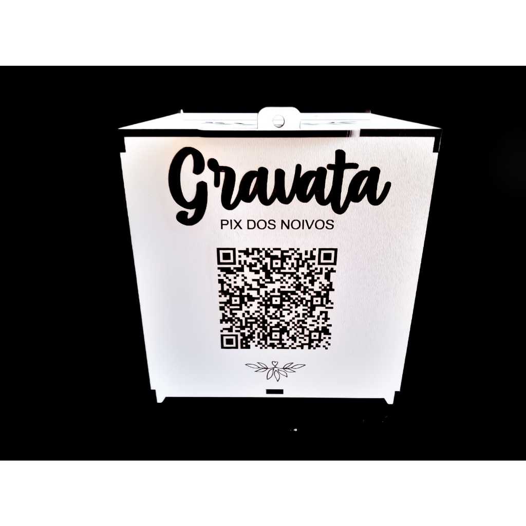 >>> ATENÇÃO <<< LEIA A DESCRIÇÃO!!! APÓS A COMPRA, ENVIAR IMEDIATAMENTE O NOME DOS NOIVOS, A IMAGEM Q R CODE E TAMBÉM UMA CHAVE P I X PARA GRAVAÇÃO. CASO CONTRÁRIO, O PRODUTO SERÁ ENVIADO COM ESPAÇO EM BRANCO, ONDE O CLIENTE PODERÁ INSERIR O P I X DEPOIS, USANDO UM ADESIVO. O PRODUTO DESSE ANUNCIO É COM GRAVAÇÃO A LASER DIRETO NA PEÇA, NÃO SENDO POSSÍVEL ALTERAR COR, PARA O PRODUTO COM RELEVO DOURADO COMO EM ALGUMAS AVALIAÇÕES TEMOS ANUNCIO DIFERENTE OU VALOR A PARTE DESSE ANUNCIO. Produtos 2 caixa cofre Caixa cofre P i x dos Noivos. 1 - Caixa Gravata 1 - Caixa Sapatinho da noiva O P I X é personalizado para sua conta. Após a compra, você gera o Q R Code do P I X da sua conta bancária e nos envia a imagem, nós inserimos no layout e fazemos a gravação. A tampa da "caixa/cofre" vai personalizada com o nome dos noivos Material 100% em MDF 3mm Branco com corte e gravação laser Medidas: Altura: 15 cm Largura: 15 cm Comprimento: 15 cm ENVIAMOS O PRODUTO DESMONTADO PARA EVITAR QUEBRAS E BARATEAR O FRETE PARA MONTAR BASTA APLICAR UM POUCO DE COLA INSTANTANEA TIPO SUPER BONDER OU OUTRA SIMULAR NOS ENCAIXES E LATERAIS! PRODUTO COM PRAZO DE PRODUÇÃO CONFORME ANUNCIO, DEVIDO AS PERSONALIZAÇÕES! Para o espertalhão que "nunca tem dinheiro na carteira", transforme isso em uma piada e se divirta! Não tem dinheiro? Faz um p i x, olha aqui o QRCODE. Tem espaço para cadeado, a pessoa também pode fazer a contribuição para "Lua de Mel" como as antigas civilizações Maias, ou seja, depositando o valor dentro da caixa. Torne sua festa de casamento mais divertida com essa super novidade!