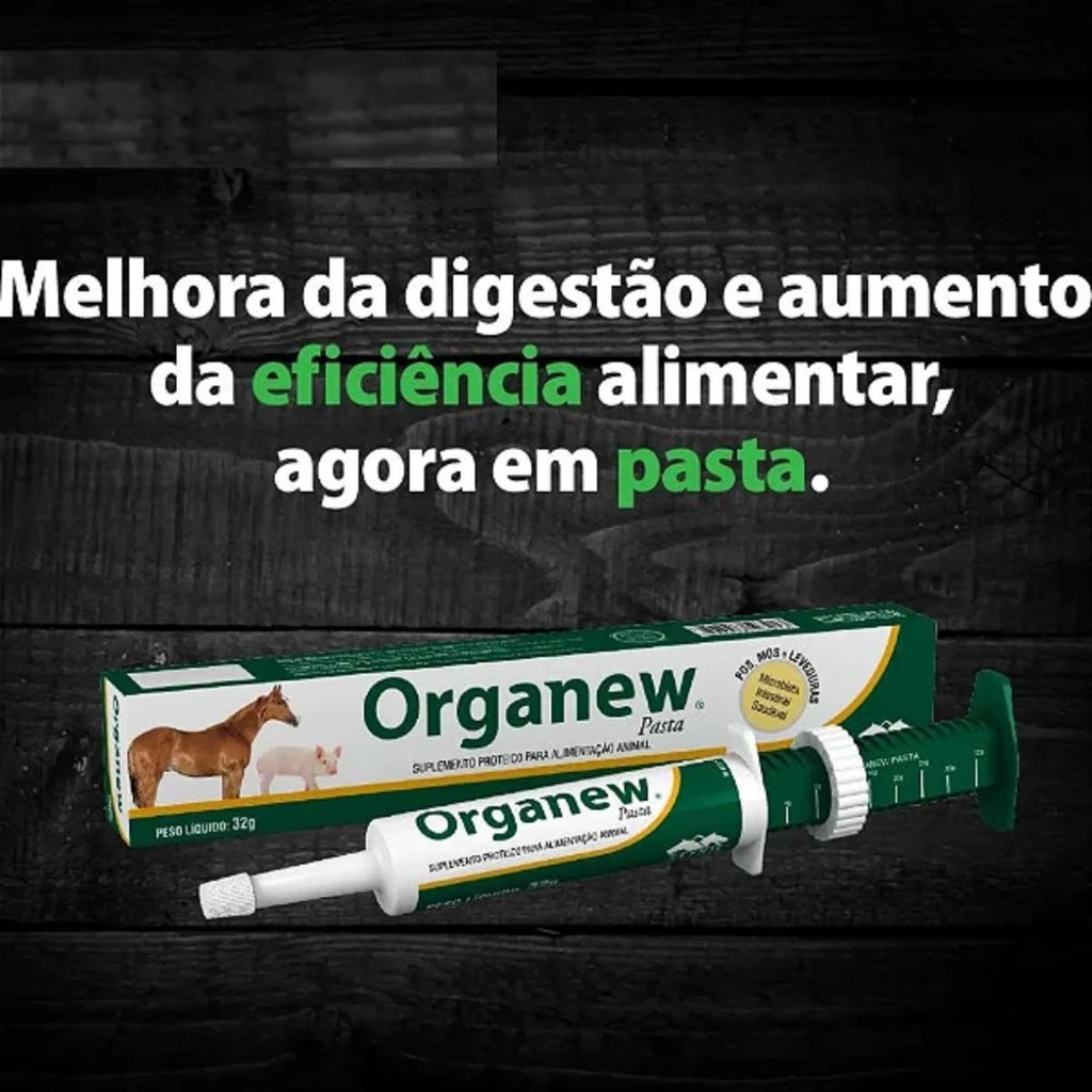 A MANADA ANIMAL é um marketplace de produtos veterinários. É a escolha certa para tutores que prezam pela qualidade dos produtos que seu animal necessita. Tudo com o suporte de uma equipe de veterinários e gestores com mais de 10 anos de experiência no mercado. Fique tranquilo, todos os nossos produtos são originais, adquiridos através de distribuidores credenciados! Ah, e todas as vendas acompanham nota fiscal! MANADA ANIMAL, Tranquilidade pra você, cuidado para ele! _________________________________ CONTÉM 02 ORGANEW PET PASTA 12GR Organew® Pet Pasta Probiótico + Prebiótico em Pasta. Organew® Pet Pasta é composto por vitaminas, aminoácidos e elementos pró e prebióticos para auxiliar no desenvolvimento e manutenção de uma microbiota intestinal saudável, contribuindo com a melhora da digestibilidade dos nutrientes da dieta e aumento da eficiência alimentar. INDICAÇÃO Indicado para animais em crescimento, estímulo do apetite e melhora da conversão alimentar. Contém leveduras vivas, FOS e MOS, que auxiliam no desenvolvimento e manutenção de uma microbiota intestinal saudável, proporcionando melhor digestibilidade nutricional e aumento da eficiência alimentar. MODO DE USAR Utilização via oral. Deve ser fornecido diretamente na boca do animal: • Cães: 2 g para cada 10 kg de peso vivo, uma vez ao dia; • Gatos: 1 g por animal, uma vez ao dia; • Aves: 0,5 g direto no bico, uma vez ao dia. NÍVEIS DE GARANTIA POR kg DO PRODUTO Proteína Bruta (Mín.) 140,5 g Umidade (Máx.) 19 g Material Mineral (Máx.) 228,7 g Fibra Bruta (Máx.) 1.500 mg Extrato Etéreo (Mín.) 475,4 g Saccharomyces cerevisiae (Mín.) 2,5 x 10 10 UFC FOS (Mín.) 4.500 mg MOS (Mín.) 450 mg Betaglucanos (Mín.) 500 mg Vitamina B1 (Mín.) 8,49 mg Vitamina B2 (Mín.) 23,55 mg Ácido Nicotínico (Mín.) 24,63 mg Vitamina B6 (Mín.) 17,33 mg Biotina (Mín.) 3,74 mg Vitamina B12 (Mín.) 30,00 mcg Ácido Aspártico (Mín.) 12,8 g Ácido Fólico (Mín.) 11,35 mg Ácido Glutâmico (Mín.) 13,9 g Alanina (Mín.) 7.600 mg Arginina (Mín.) 6.300 mg Cistina (Mín.) 2.300 mg Fenilalanina (Mín.) 5.400 mg Glicina (Mín.) 6.200 mg Histidina (Mín.) 3.400 mg Isoleucina (Mín.) 6.300 mg Leucina (Mín.) 9.300 mg Lisina (Mín.) 16,4 g Metionina (Mín.) 5.700 mg Prolina (Mín.) 4.800 mg Serina (Mín.) 7.000 mg Tirosina (Mín.) 5.600 mg Treonina (Mín.) 6.400 mg Valina (Mín.) 7.200 mg Colina (Mín.) 919,13 mg Inositol (Mín.) 1.200 mg APRESENTAÇÃO Seringa contendo 12 g.