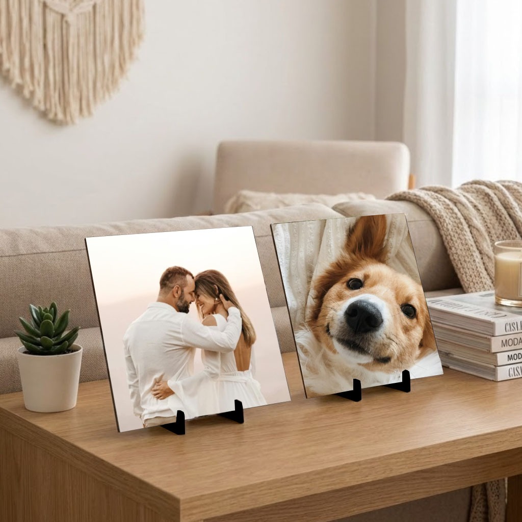 02 Quadros de Mesa Personalizado Tamanho 20x20cm presente namoral casal com suporte COM SUA IMAGEM