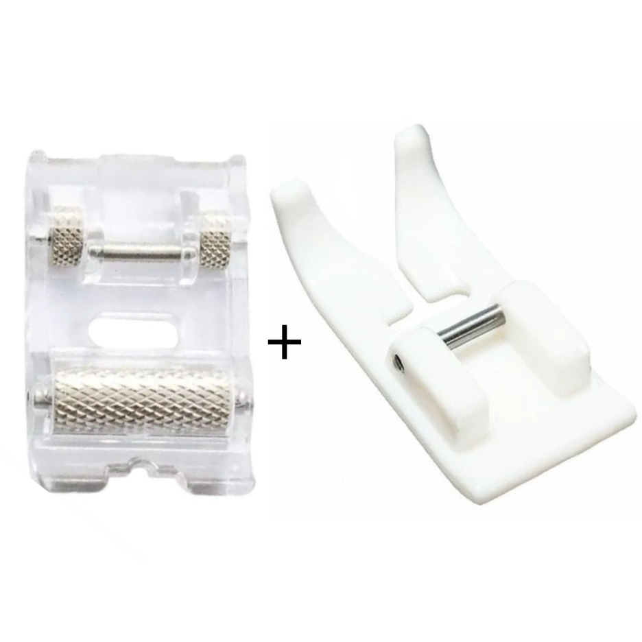 02 Sapatilha Calcador Sapata Pézinho Deslizante Rolete Costurar Couro Manta Plastico