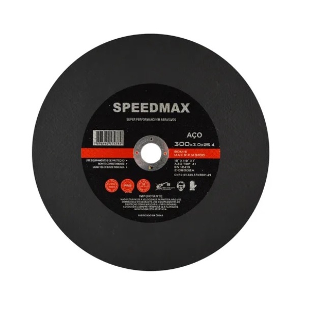 Contém 02 discos de corte para materiais ferrosos. Alto rendimento industrial. Diâmetro: 300mm Espessura 3,2mm Furo: 25,4mm