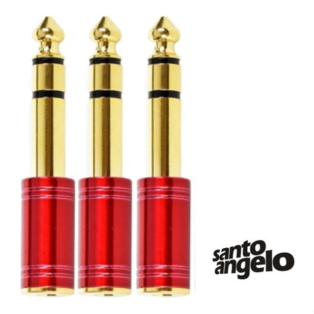 Somos a Eletromusic Loja Especializada em Instrumentos Musicais a mais de 10 anos no Mercado. Qual e o nosso diferencial? A musica corre em nossas veias e por isso amamos o que fazemos, Buscamos sempre oferecer qualidade pelo Melhor preco.Todos os nossos produtos sao de Fornecedores Nacionais com rigoroso controle de qualidade, possuem nota fiscal eletronica e garantia de fabrica. Voce e bem vindo para fazer parte da nossa historia Adaptador Santo Angelo P2 Para P10 - CONTEM : 03 UNIDADES Adaptador P2 Para P10 Santo Angelo Estereo Niquelado Vermelho E Ouro Adaptador P2 st /P10 st estereo usinado em latao com acabamento em Ouro 18k, corpo usinado em Aluminio anodizado na cor vermelha. ESPECIFICACOES Uso: Audio Uso 2: Mesa de Som Material: Latao Revestimento externo: Ouro 18k / Aluminio Alta rotatividade: Sim Tipo: Adaptador Tipo de plug (L): P2 Angulo: 180?
