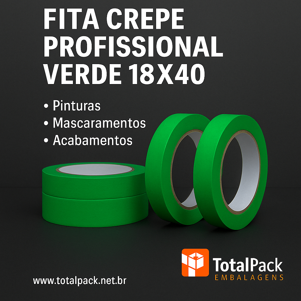 03 Rolos Fita Crepe Profissional Automotiva Verde 18X40