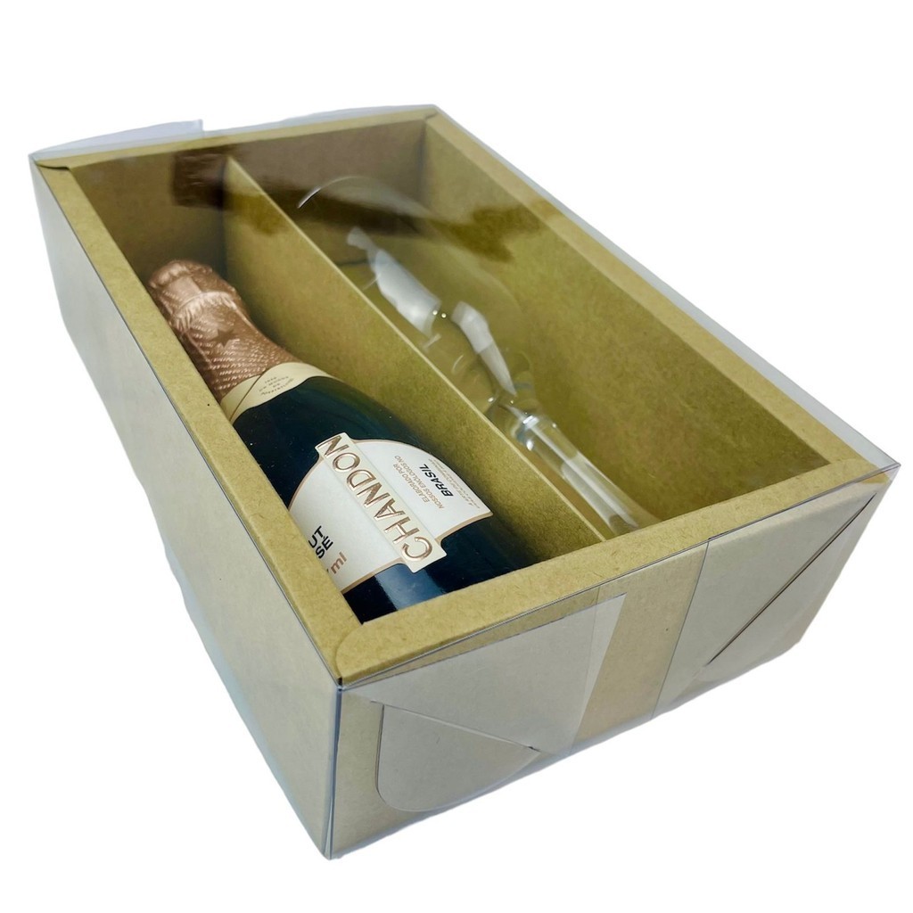 Caixa com Visor Para mini Champanhe e Taça, Cor KRAFT com 5 unidades - ASSK A Caixa com Visor é ideal para expor seus produtos, para que fiquem visíveis a quem comprar ou receber. Com visor transparente, peças de artesanato para que fiquem encantadoras na Caixa com Visor. Use e abuse de sua criatividade. Amarre uma fita bem bonita, amarre um laço e presenteie ou faça suas encomendas com muito mais estilo. Características: Base de Papel e Tampa com Visor Transparente, A caixa vem desmontada. Comprimento: 20,5cm x Largura: 13cm x Altura: 6cm. COR NO TITULO DO ANUNCIO