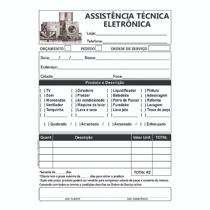 Onde comprar 05 Blocos Assistência Eletrônica 10x14 c/ 50 folhas por talão Orçamento Ordem Serviço Técnica Conserto?