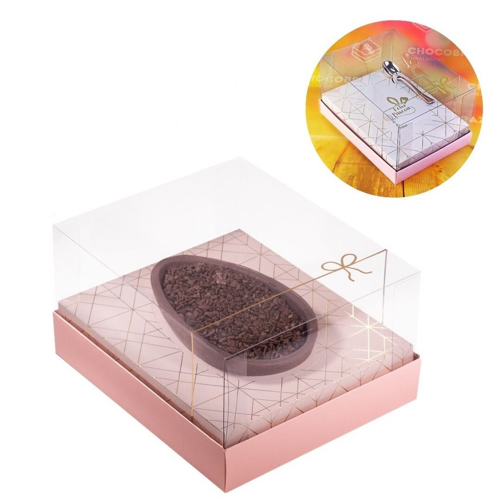 CAIXAS P/ OVO DE COLHER CLASSIC AJUSTÁVEL 150/250G - PÁSCOA CLÁSSICA SÃO EMBALAGENS ELEGANTES E VERSÁTEIS, IDEAL PARA OVOS DE COLHER COM PESO DE 150G A 250G. COM MOLDURA AJUSTÁVEL, PERMITE UM ENCAIXE PERFEITO PARA OVOS DE DIFERENTES TAMANHOS. O DESIGN EM TONALIDADE ROSE ADICIONA UM TOQUE SOFISTICADO E CLÁSSICO, PERFEITO PARA A PÁSCOA. FEITA EM MATERIAL RESISTENTE, GARANTE SEGURANÇA E PROTEÇÃO AO OVO DE COLHER, ALÉM DE PROPORCIONAR UMA APRESENTAÇÃO ATRAENTE E FESTIVA, IDEAL PARA PRESENTES OU COMERCIALIZAÇÃO NA DATA. MEDIDAS: 9X16X12 CM - ACOMPANHA TAG REFERÊNCIA BWB: 150G=824 / 250G=49 ATENÇÃO: - NÃO ACOMPANHA A COLHER - NÃO ACOMPANHA CHOCOLATES