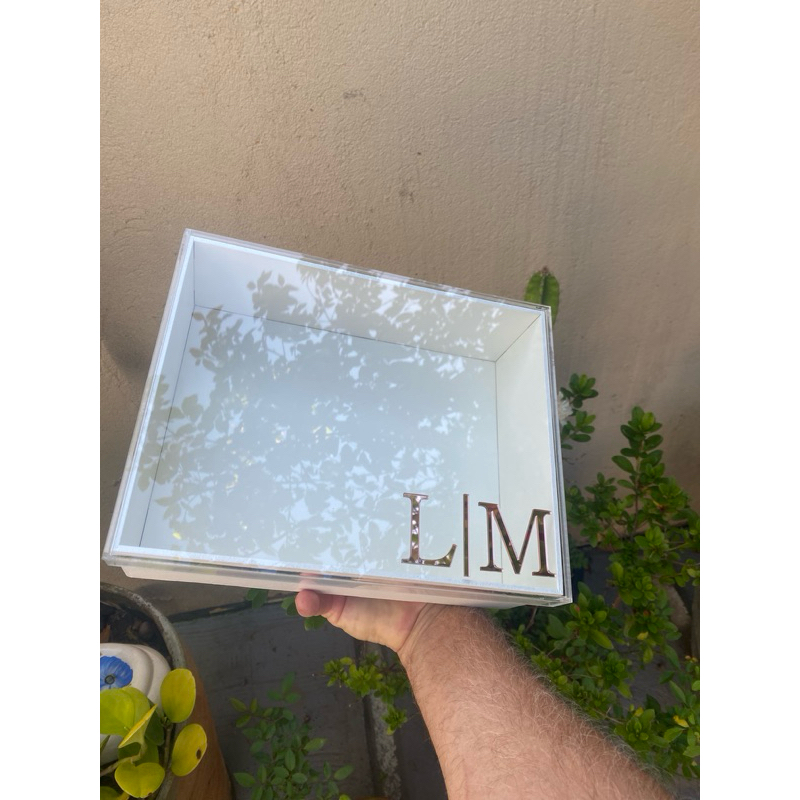 ATENÇÃO: DEVIDO LOGÍSTICA COMPRA MÁXIMA POR PEDIDO SÃO 5 CXS. caixas em MDF pintada com tampa em acrilico transparente. Aplique ou gravação a laser. Aplique consiste de acrilico espelhado na cores douradas, rose, prata. POR FAVOR SE FOR COMPRAR MAIS DE UM KIT PERGUNTE NO CHAT PRIMEIRO. TEM QUE SER ENVIADO ARQUIVO PARA PERSONALIZAÇÃO NO FORMATO VETORIAL. CDR OU DXF.
